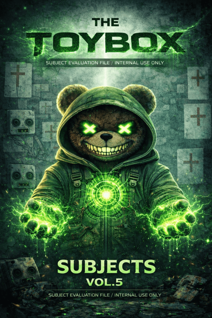 Vol.5: Subjects is a quiet descent into the human core of The Toybox universe. This volume steps away from spectacle and focuses instead on the individuals who were labeled, monitored, tested, and archived long before they understood what they were becoming. It is not a story told through action, but through documentation—through fragments of psychological evaluations, resonance scans, containment notes, and internal reports that slowly reveal something far more unsettling than any anomaly.