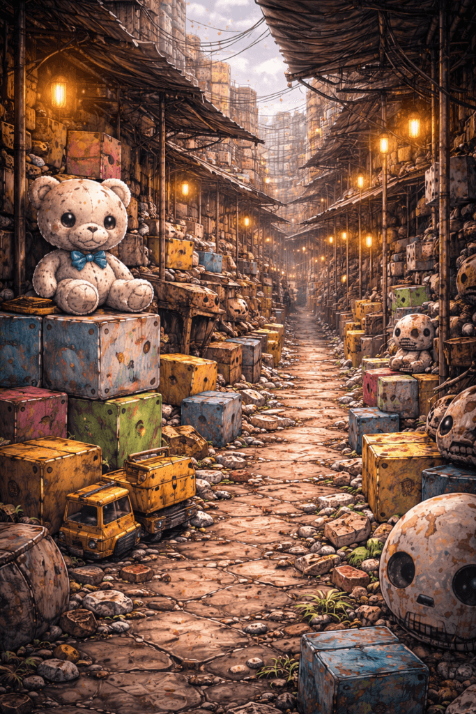 Not all records survive intact. This gallery contains visual fragments retrieved from The Toybox — glimpses of its worlds, entities, and unfolding events.