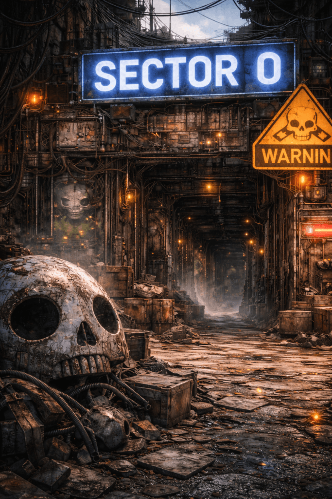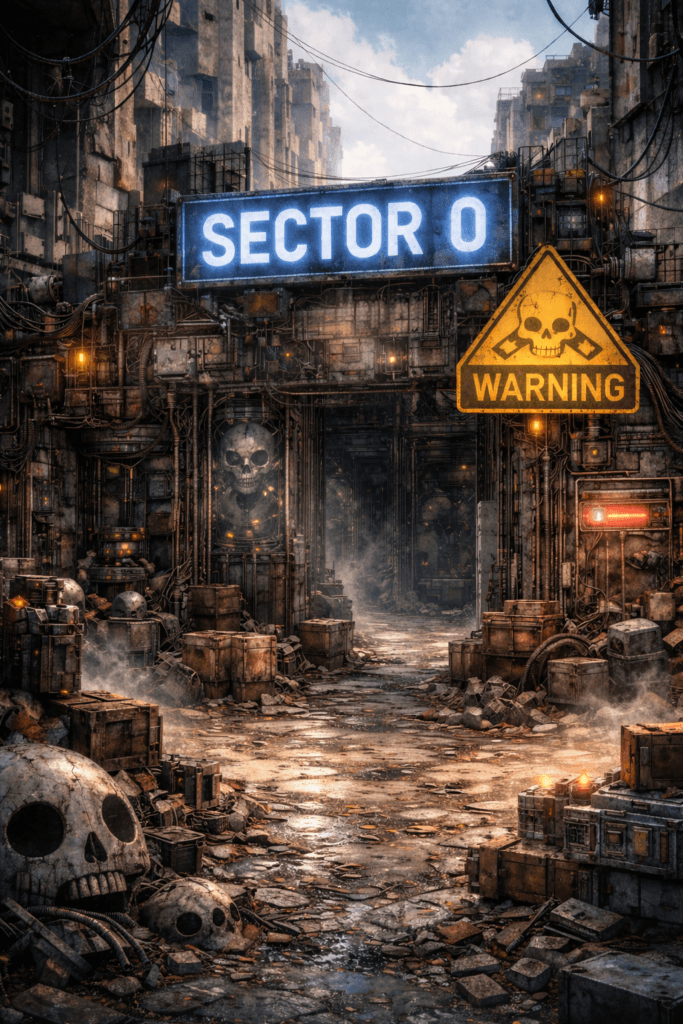Beyond its streets, Sector 0 operates as a living system rather than a location. Power grids are unstable and often controlled by whoever can hold them, data flows through black-market relays, and surveillance is fragmented, unreliable, or deliberately falsified. Nothing here is fully offline, yet nothing is truly secure. The environment itself rewards adaptability — those who rely on rigid doctrine or centralized command rarely last. Every structure, alliance, and rule exists only as long as it remains useful.