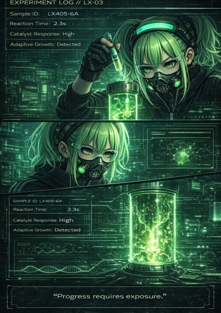 Quiet and observant, Lume rarely speaks more than necessary. She studies the world the way other alchemists study formulas—patiently, searching for hidden patterns. Her intuition with materials is almost unnatural; she often seems to know how a reaction will behave before it even begins. Rather than seeking fame or recognition, she moves from place to place experimenting, refining her craft, and uncovering new transformations that others would never dare attempt.