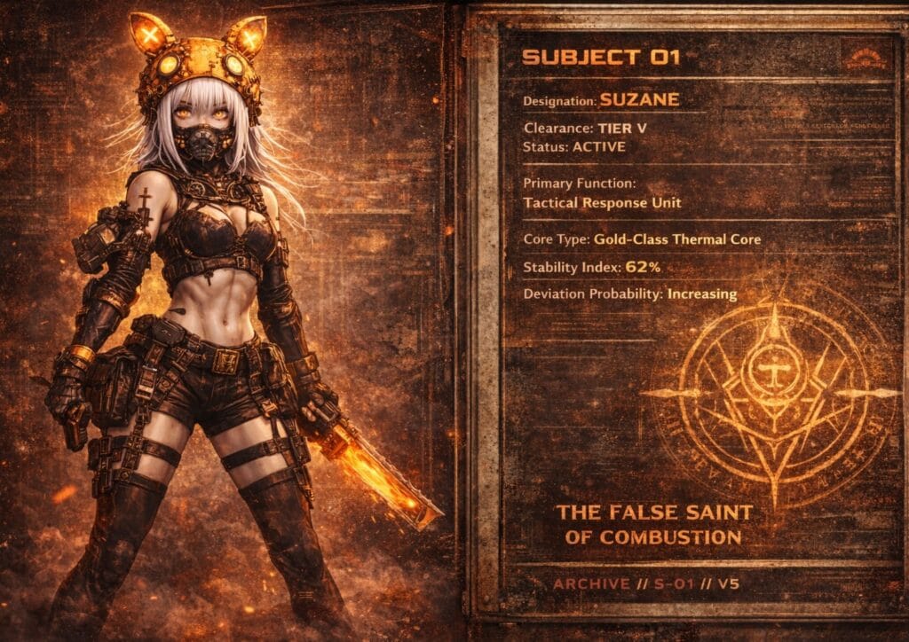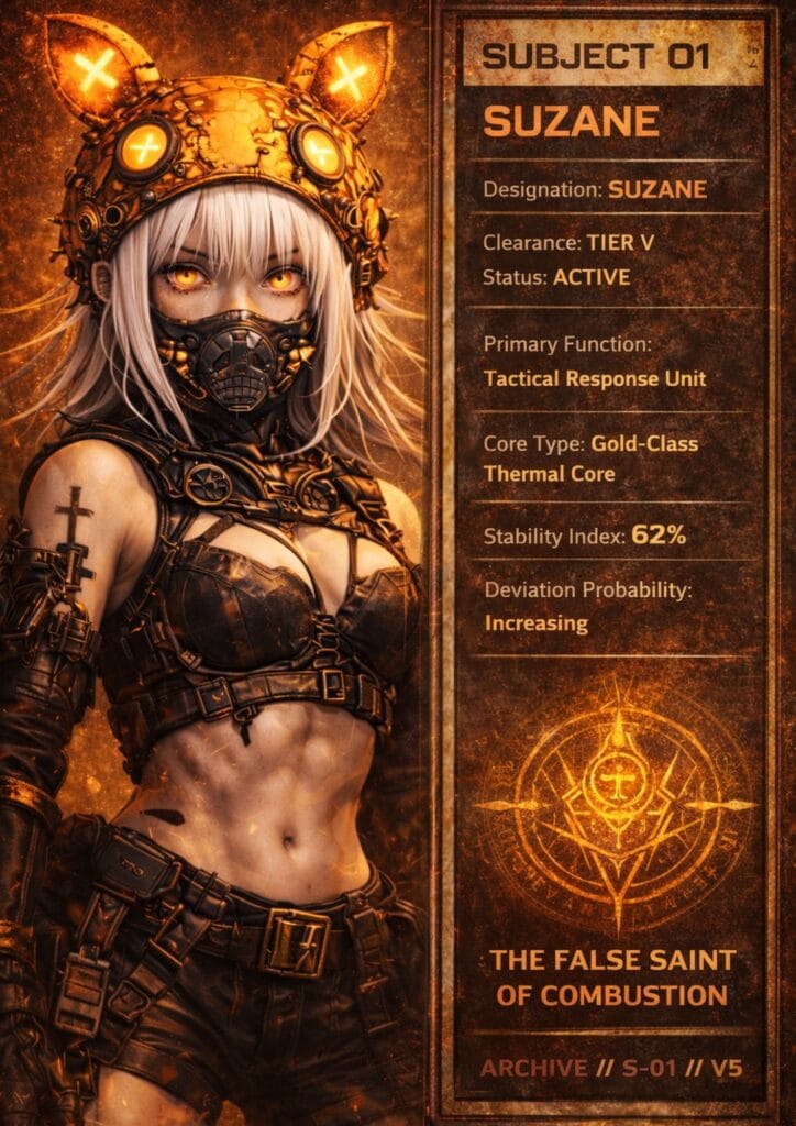 There is always a subtle tension around her, because no one is ever completely sure where her true loyalties lie. Suzanne is pragmatic and highly adaptable, surviving not through brute strength but through intelligence, patience, and an instinct for reading systems and motives. She is the kind of person who can walk between factions, secrets, and dangerous truths without losing sight of her own purpose.