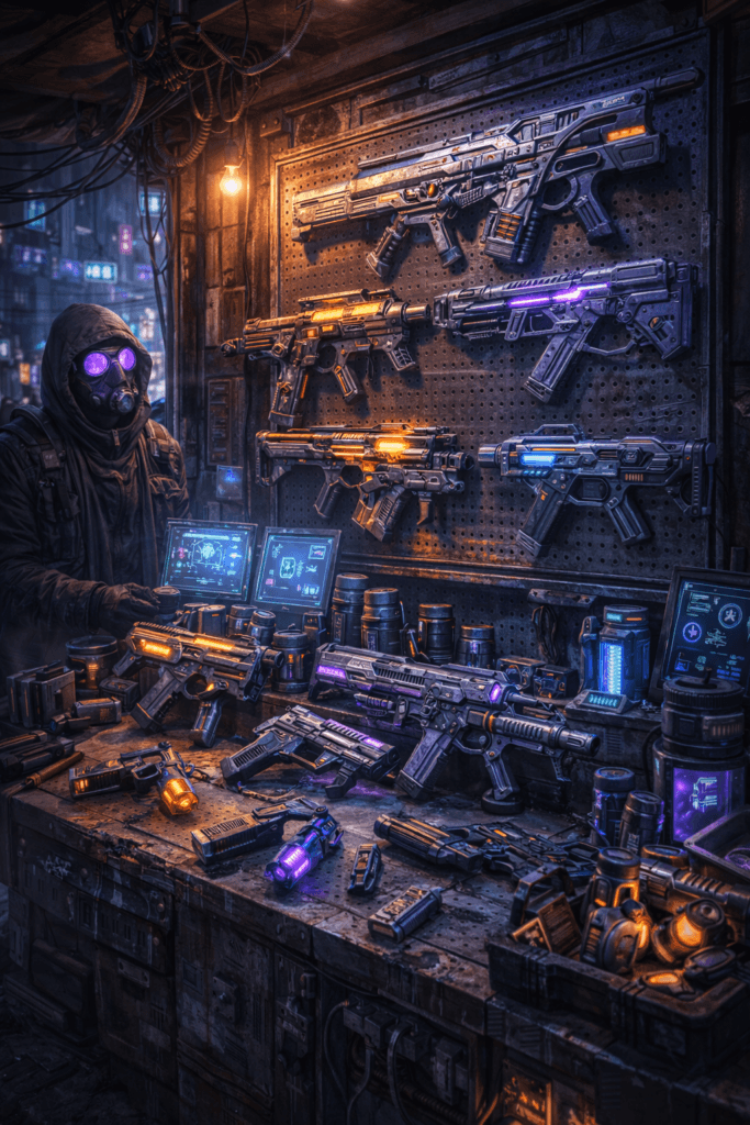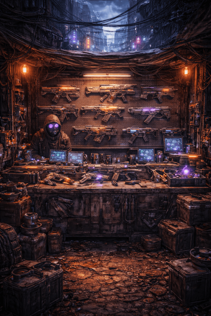 What The Market represents is access. Access to weapons that never passed certification, gear modified beyond safety limits, and systems that were deemed too dangerous, too unstable, or too untraceable for sanctioned use. Nothing here is mass-produced in the traditional sense. Each item carries a history: a prototype, a failed military contract, a black-site extraction, or a custom build designed for a single operator and later replicated.
